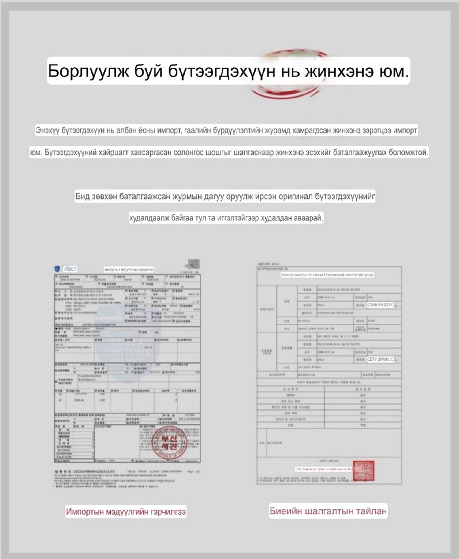Солонгосоос таны гарт хүргэнэ (карго төлбөр тусдаа)
